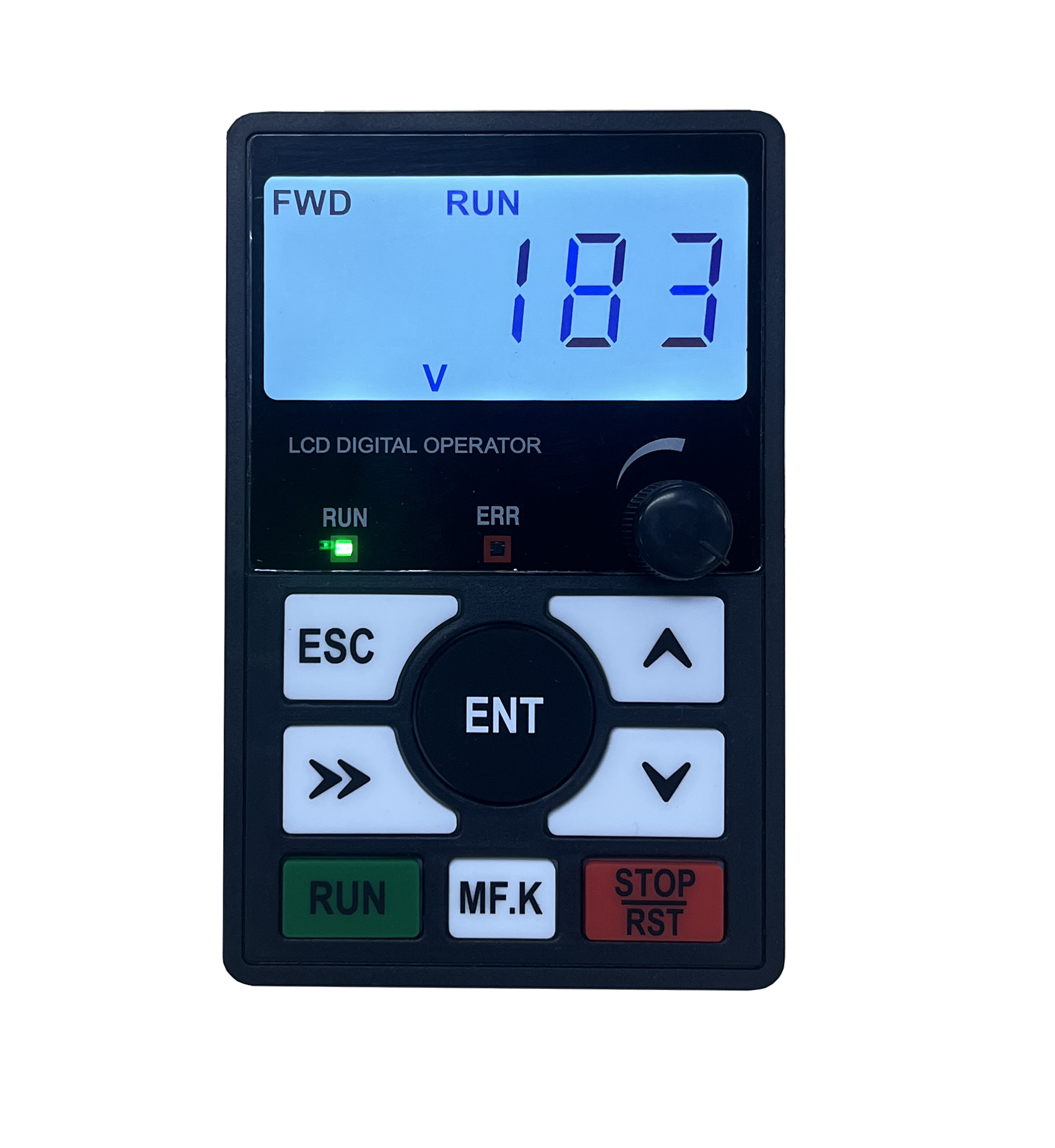 Valdymo pultelis yra valdymo panelė (HMI), kurioje keičiame dažnio keitiklio parametrus ir funkcijas.